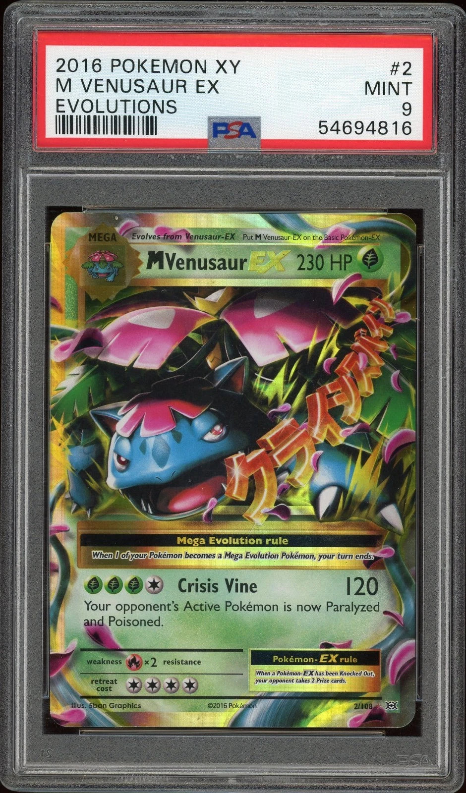 2016 Pokemon XY #2 M Venusaur EX Evolutions PSA 9 Mint